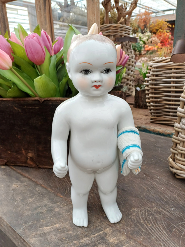 Badpop - Frozen CharlieAntieke badpop, ook wel Frozen Charlie genoemd. De pop is, gezien de leeftijd nog in goede staat en heeft geen beschadigingen. Hij is in de nek gemerkt maar het is ons niet bekend wie de maker is. Het handdoekje om zijn arm is…